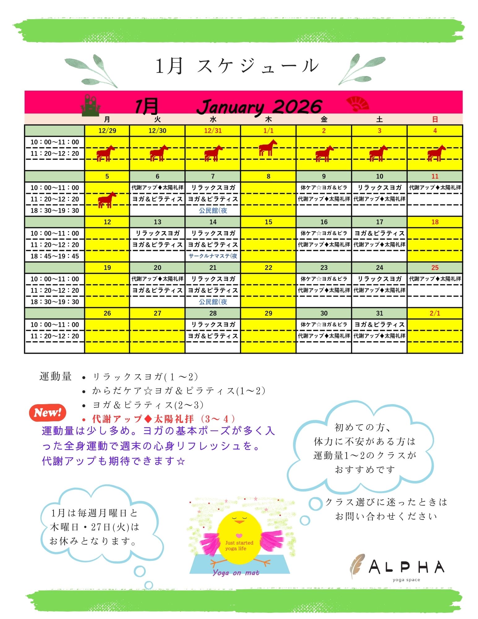 2026.01.08 あけましておめでとうございます。 2024年4月にひっそりと開いたヨガスペースアルファですが、少しずつ会員さんも増えてきました。「できるだけお一人ずつ、丁寧に指導をする」ことをモットー…
