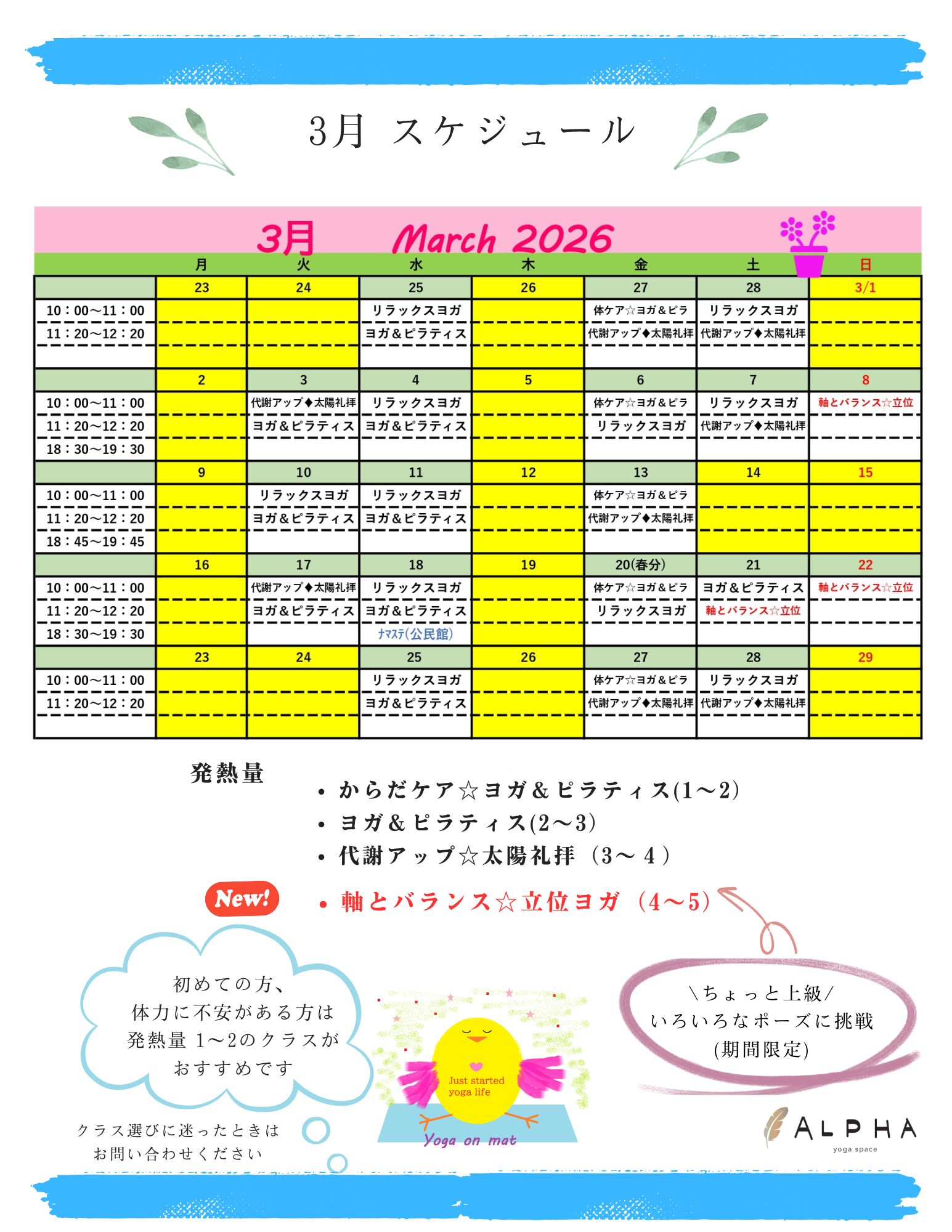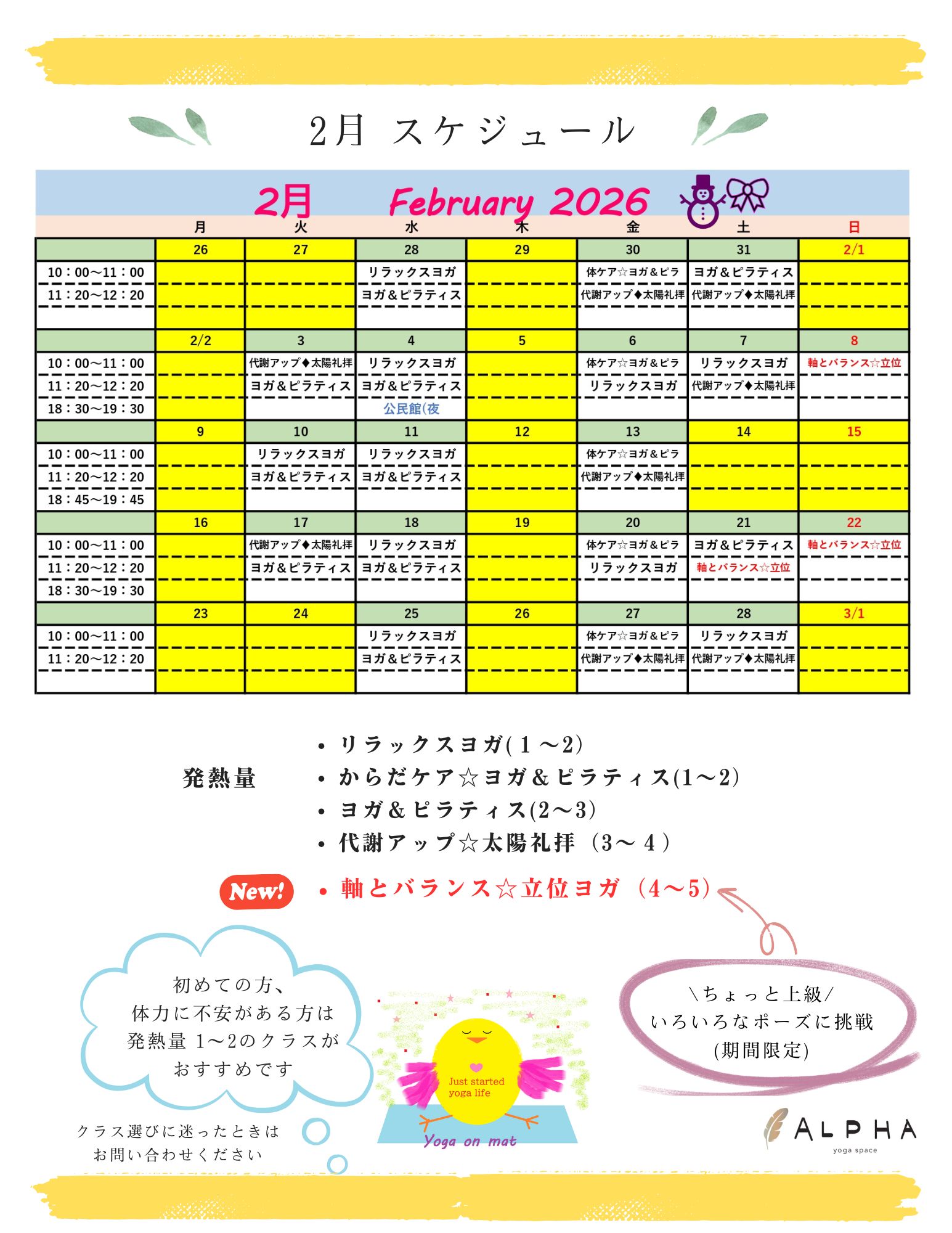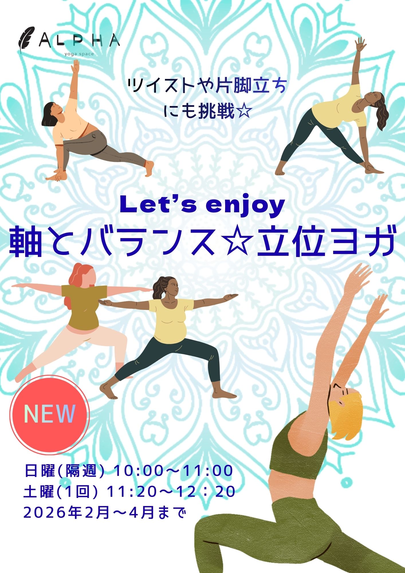 2026.01.21 2月から新しいクラス「軸とバランス☆立位ヨガ」をスタートします。 2月から4月までの3か月間(週末・隔週で開催)で、 ・ヨガの立位ポーズを基礎から丁寧に ・立位のツイストや…